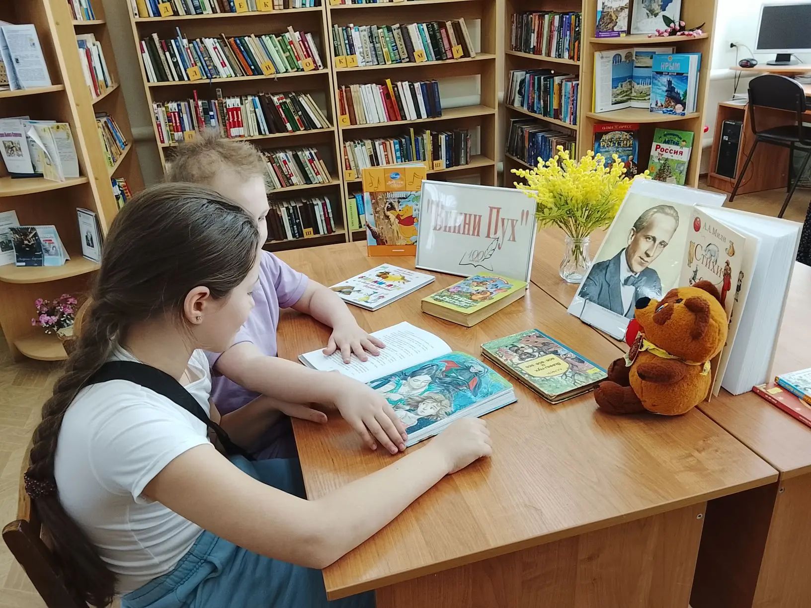 В рамках программы сетевого взаимодействия для 1-5 классов «В гостях у волшебницы Книги» в библиотеке №1 им. В. Маяковского сотрудники провели литературный час «Вини Пух».