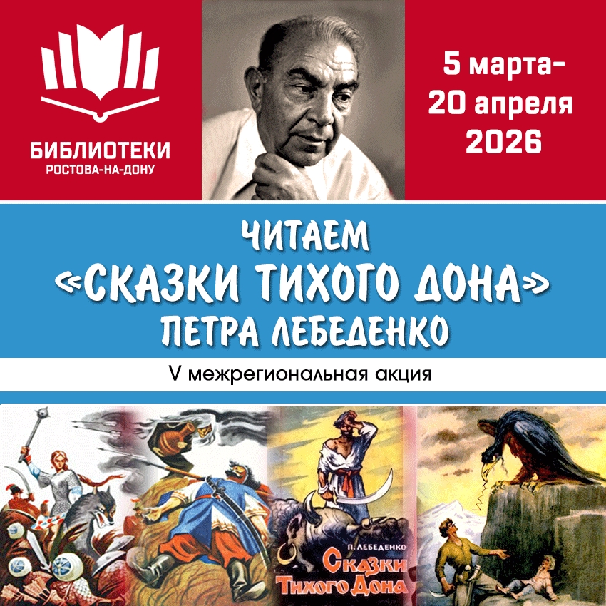 Библиотека № 1 им. В. Маяковского города Батайска принимает участие в V Межрегиональной акции «Читаем «Сказки Тихого Дона» Петра Лебеденко» организаторор – Детская библиотека имени П. В. Лебеденко МБУК Ростовская-на-Дону городская ЦБС, приуроченная к 110-летию со дня рождения известного донского писателя, лётчика-фронтовика, прозаика и сценариста.