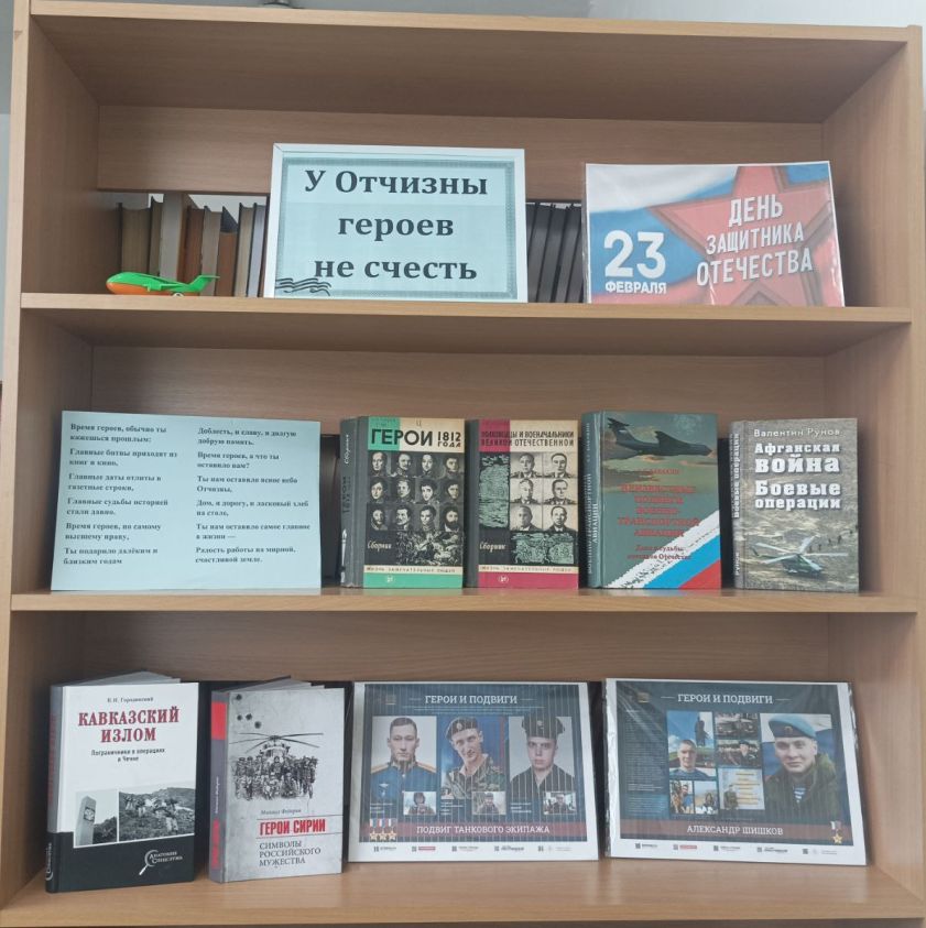 В библиотеке № 1 им. В. Маяковского оформлена выставка книг, посвящённая Дню защитника Отечества. На выставке представлены издания о героях войны и истории армии. Мероприятие помогло посетителям лучше узнать о подвиге защитников Родины и вспомнить важные страницы нашей истории.