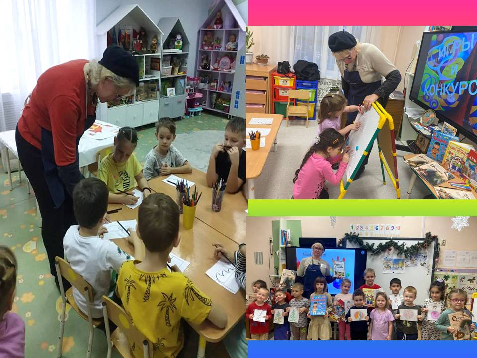 Дети отправились в деревеньку «Загадушка», где узнали, какими инструментами пользуются художники. Размялись на физкультминутке, а потом каждый смог проявить свои творческие способности. В награду за старание и умение был показан мультфильм «Крот-художник».