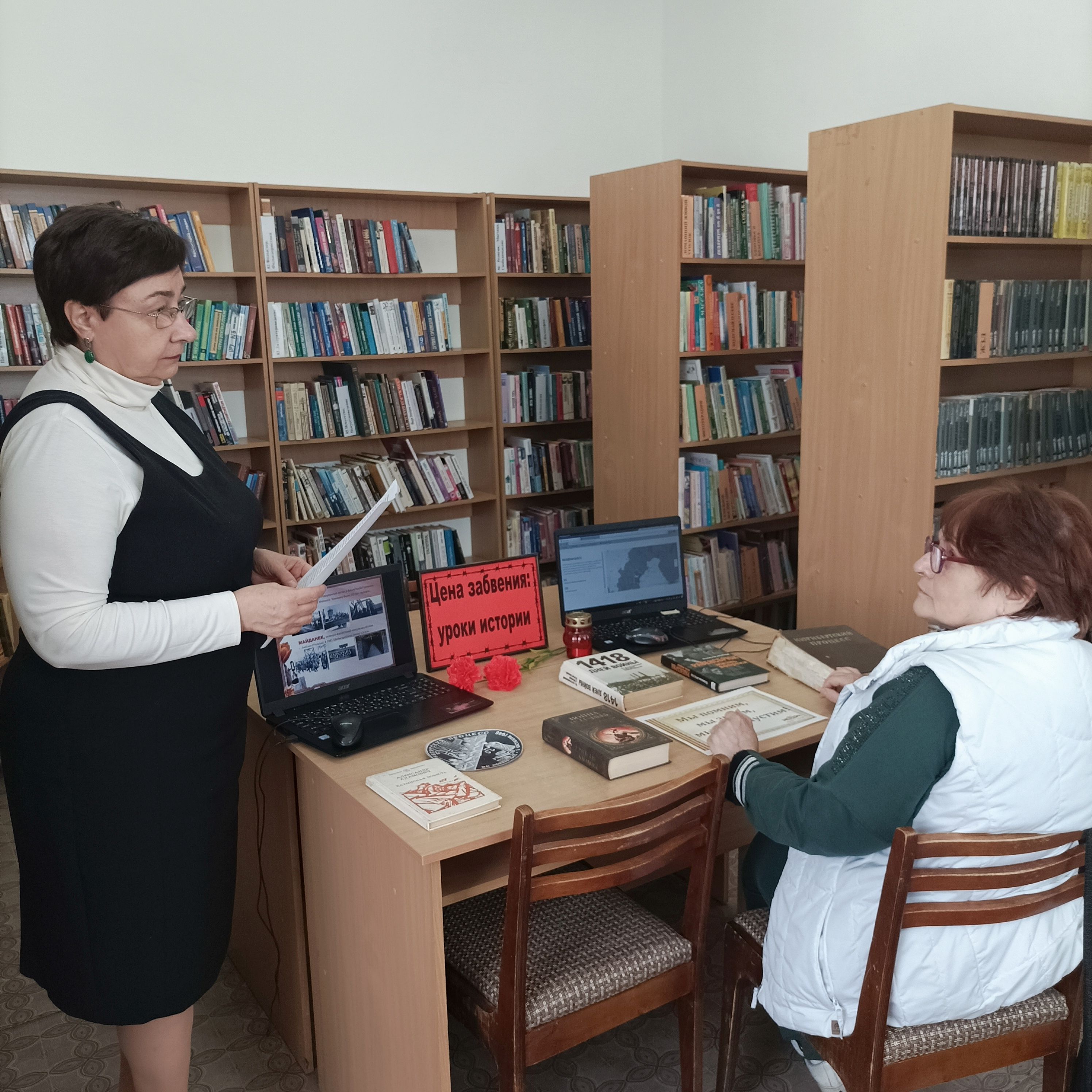 В библиотеке №1 им. В. Маяковского прошла беседа «Цена забвения: уроки истории», которая проводилась в рамках Дня памяти жертв геноцида советского народа нацистами и их пособниками в годы Великой Отечественной войны. Посетители узнали о причинах геноцида, о страшных последствиях ненависти и человеческого равнодушия. Присутствующие на мероприятии пришли к выводу, что уроки прошлого нельзя забывать, чтобы не допустить повторения всенародного горя в настоящем. У таких действий против человечества и мира нет срока и места давности. Беседа сопровождалось показом презентации «Без срока давности».